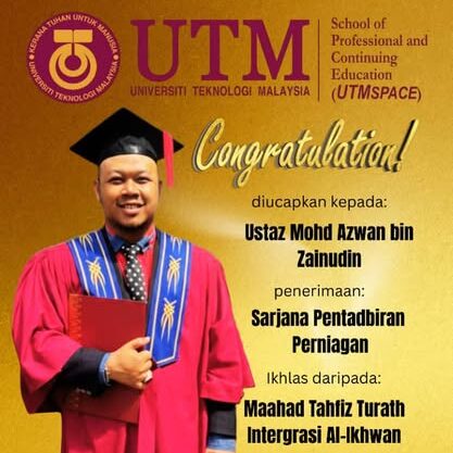 On 24 November 2025, Mohd Azwan bin Zainudin achieved another major milestone by earning his Master’s degree in Business Administration (MBA) from Universiti Teknologi Malaysia, further strengthening his expertise in management and strategic leadership.